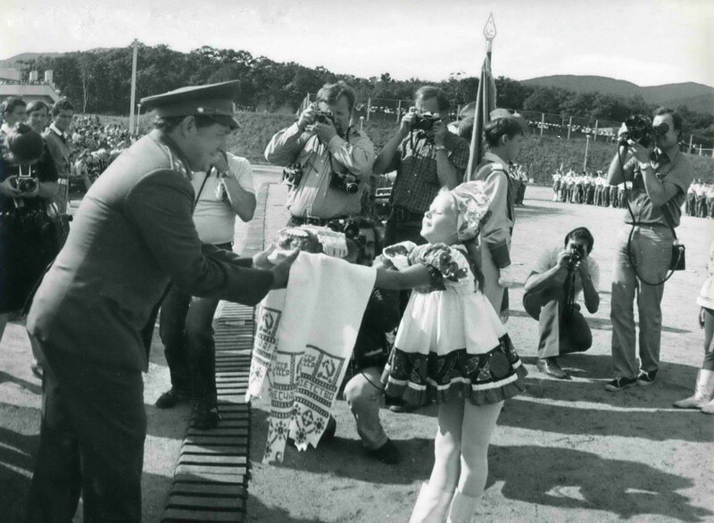 Торжественная линейка, посвящённая открытию ВПЛ ЦК ВЛКСМ «Океан». 17 августа 1984 г.